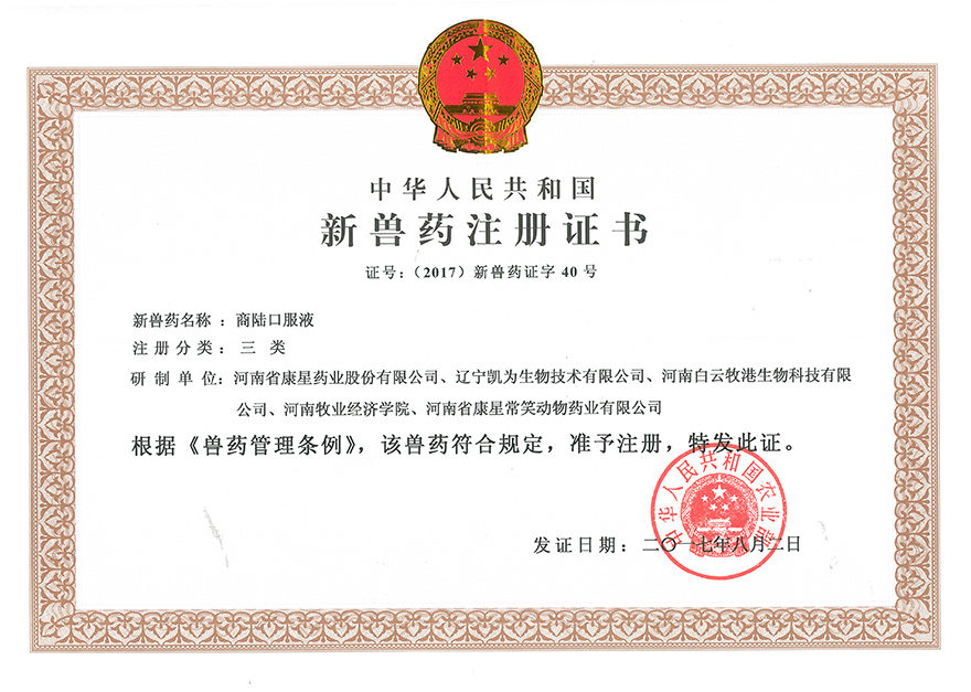 國家三類新獸藥1項:商陸口服液