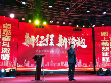 公司總裁王鐵良先生首先總結(jié)公司十余年的奮斗歷程,“從冰雪到綠原,那是冬天走向春天的路,從失敗到成功,那是披襟斬棘闖出來的路,凱為人十余載風雨同舟,不負韶華。過去的一年是我們公司創(chuàng)新業(yè)績、重振區(qū)域品牌的一年,2019年公司不僅實現(xiàn)了銷售收入同比增長,而且公司新增養(yǎng)殖基地三個,新建培訓中心已納入養(yǎng)殖服務板塊,新建檢測中心納入客戶服務體系。實踐證明:我們一直用凱為的價值觀衡量我們的行動向共同美好的愿景持續(xù)奮進!正是因為你們的付出和攜手奮進才有今天的凱為。我代表公司感謝所有員工的努力和敬業(yè),同時更要感謝你們的家人,正是他們默默的支持和奉獻,使你們能全身心的投入工作,在此,我衷心的祝愿你們健康快樂!萬事如意??!”