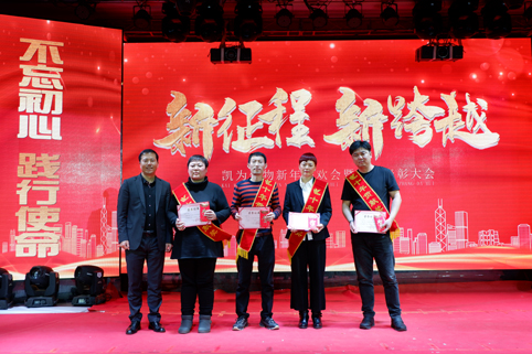 聯(lián)歡的同時進入了一年一度公司重頭戲——表彰環(huán)節(jié)。凱為過去一年的輝煌成就,離不開所有凱為人的辛勤付出。首先王總表彰了與凱為共同奮斗的十年、六年的忠誠衛(wèi)士,其次趙總表彰了各區(qū)域的銷售標兵及各部門的優(yōu)秀員工,你們是凱為的排頭兵,你們是凱為的中流砥柱,你們是最美凱為人!表彰形式花樣翻新,現(xiàn)金大紅包、歡樂砸金蛋、微信紅包雨........一份份禮品、一個個紅包、一次次表彰,都彰顯著凱為人披荊斬棘不負韶華的拼搏與奮斗!都書寫著凱為人實現(xiàn)愿景不辱使命的成就與輝煌??!