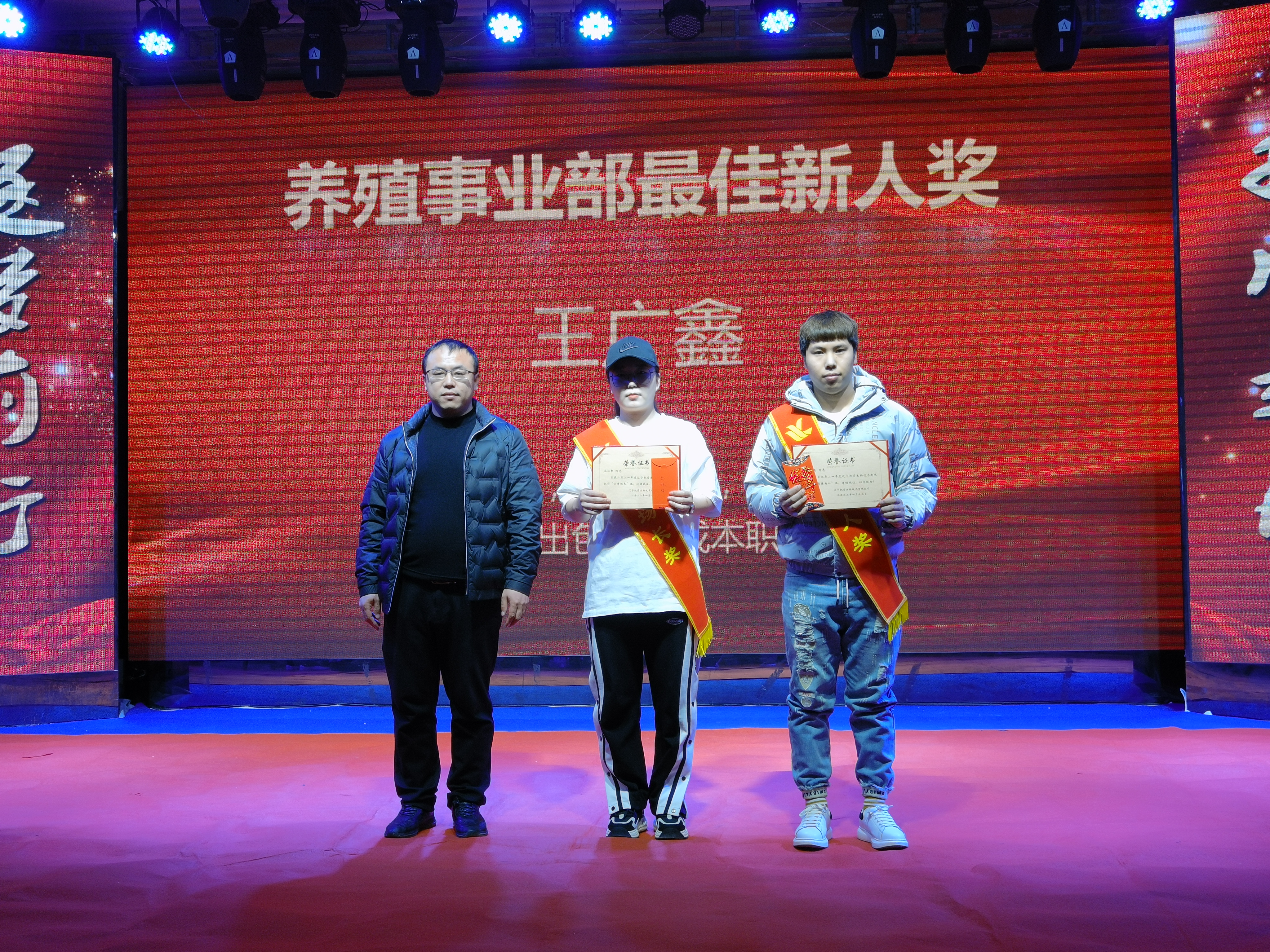 叢林智、王廣鑫獲得2021年度優(yōu)秀場長、最佳新人獎。叢林智工作積極努力,技術(shù)精湛。能吃苦,肯鉆研,使凱豐養(yǎng)殖小區(qū)的出欄成績大幅度提升。并且創(chuàng)造凱豐養(yǎng)殖小區(qū)歷史最高歐值410以上,利潤單只最高。王廣鑫踏實(shí)肯干,勤奮好學(xué)。協(xié)助場長出色的完成本職工作。得到領(lǐng)導(dǎo)和同事的一致的高度好評。公司養(yǎng)殖場總經(jīng)理劉迪為獲獎?wù)?/span>頒獎。