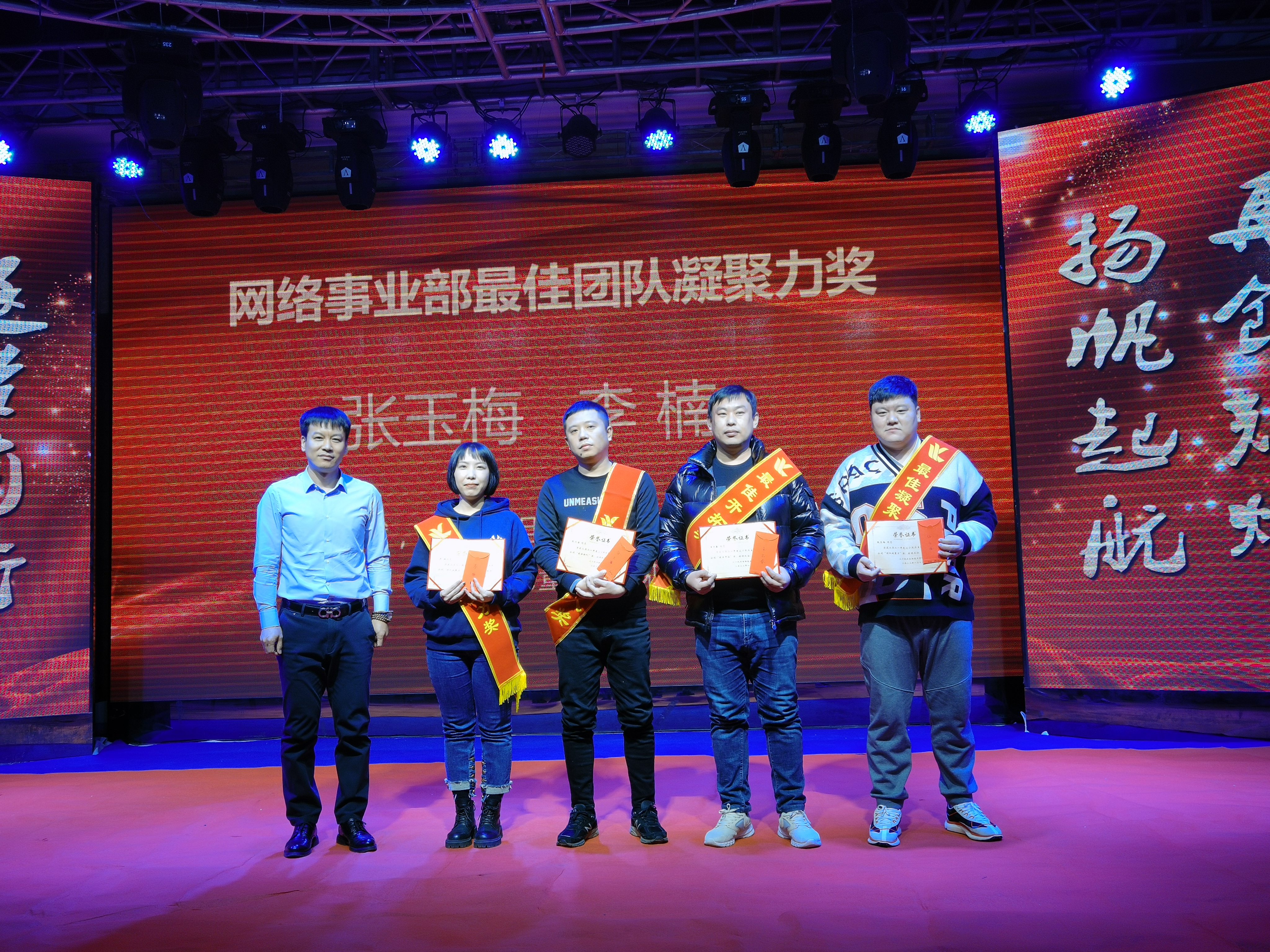 王爾春獲得網(wǎng)絡(luò)事業(yè)部最佳開拓獎;張興海獲得網(wǎng)絡(luò)事業(yè)部最佳新人獎;張玉梅、李楠獲得網(wǎng)絡(luò)事業(yè)部最佳團(tuán)隊(duì)凝聚力獎。公司網(wǎng)絡(luò)事業(yè)部總經(jīng)理趙福寬為獲獎?wù)?/span>頒獎