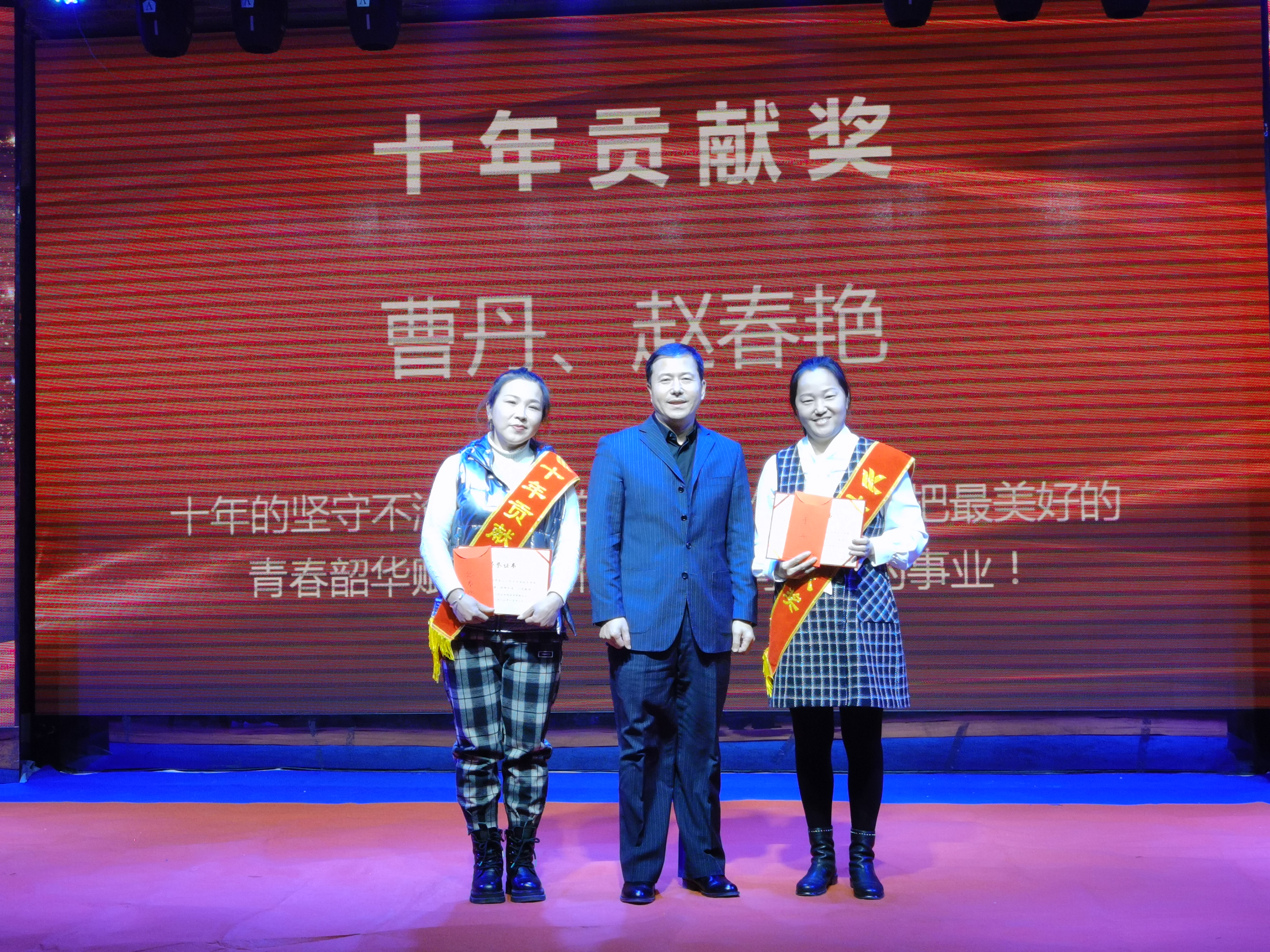 曹丹、趙春燕獲得十年貢獻(xiàn)獎,十年的堅守不渝,十年的默默耕作,們把最美好的青春韶華賦予了我們?yōu)橹餐瑠^斗的事業(yè),十年如一日們時刻心系企業(yè)的憂患,與企業(yè)同風(fēng)雨共命運(yùn)。公司總裁王鐵良為獲獎?wù)?/span>頒獎