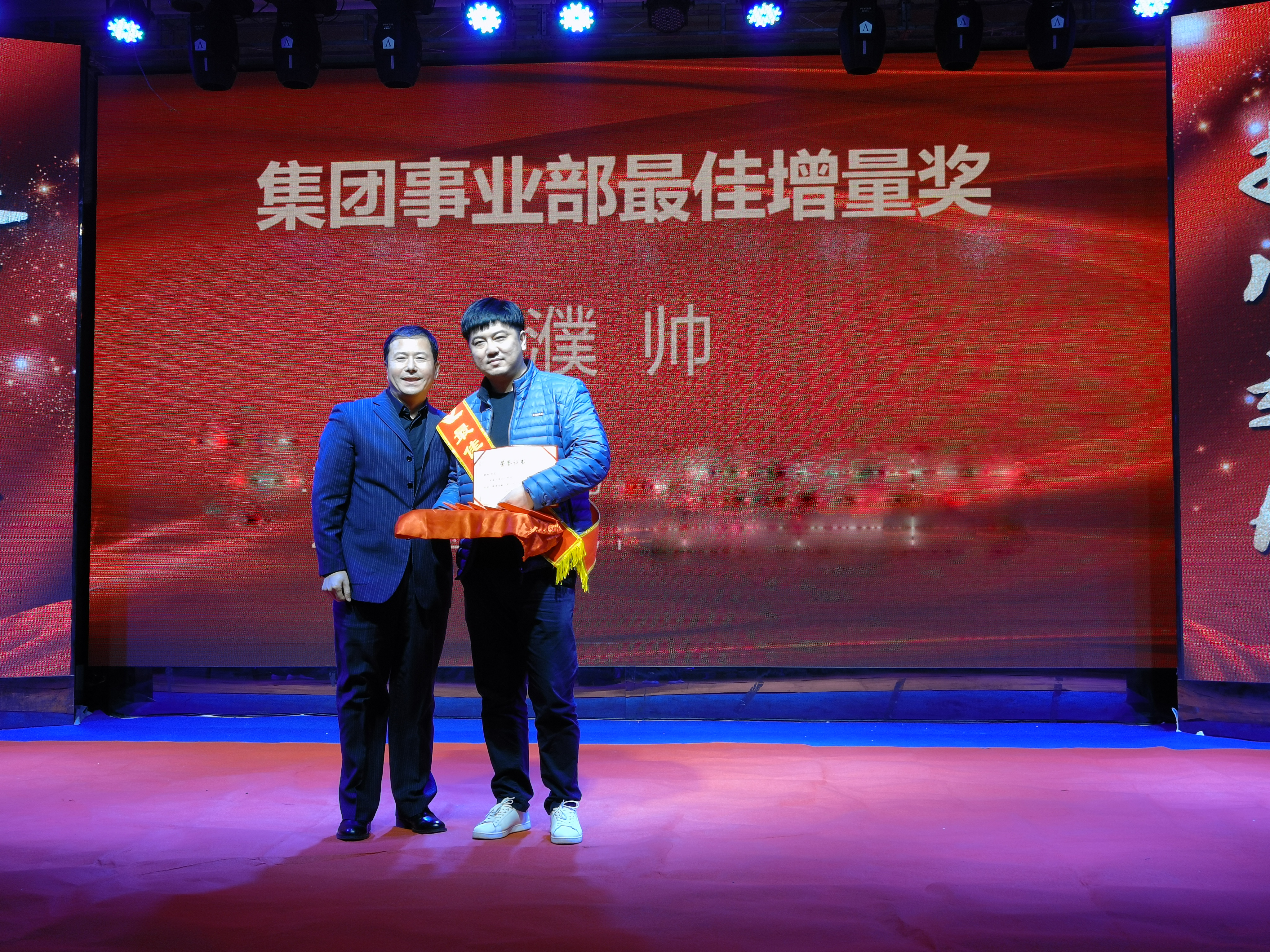 璞帥獲得集團(tuán)事業(yè)部最佳突破獎,自身頑強(qiáng)、勤奮、百折不撓的拼搏精神,為行業(yè)所津津樂道。他把銷售量放在第一位,把優(yōu)質(zhì)服務(wù)融化在銷售環(huán)節(jié)。他樸實(shí)卻不普通,平凡卻不平庸,扎根一線,無怨無悔的奮斗,用實(shí)際行動感召團(tuán)隊(duì)每一個人。今年的回款金額超過預(yù)定目標(biāo)2倍多的增量詮釋了銷售人的一切皆有可能的精彩。公司總裁王鐵良為獲獎?wù)?/span>頒獎。